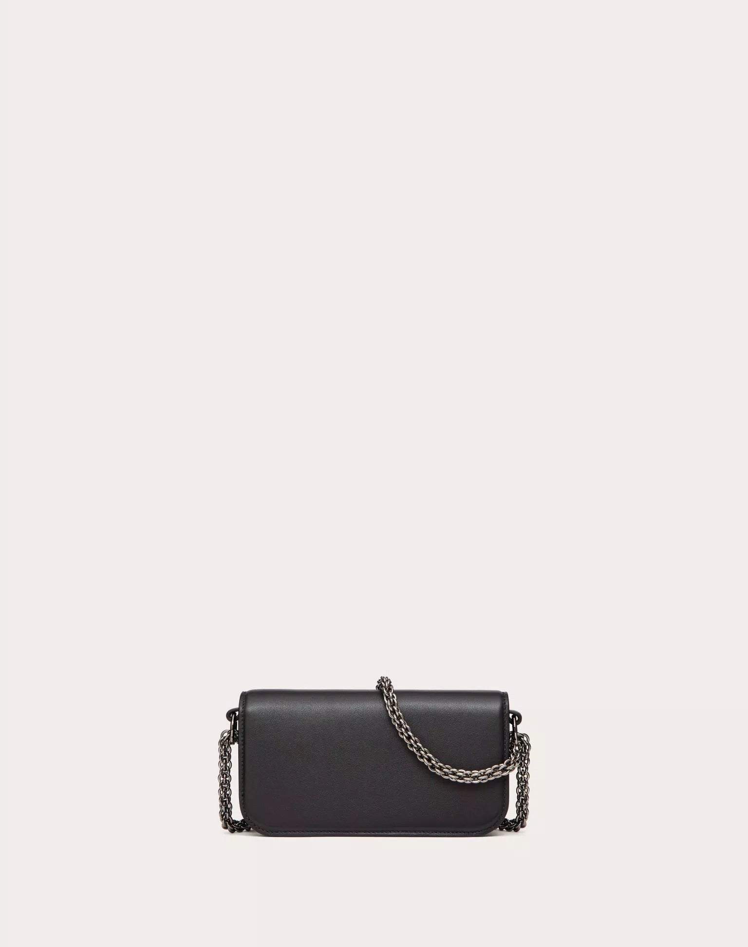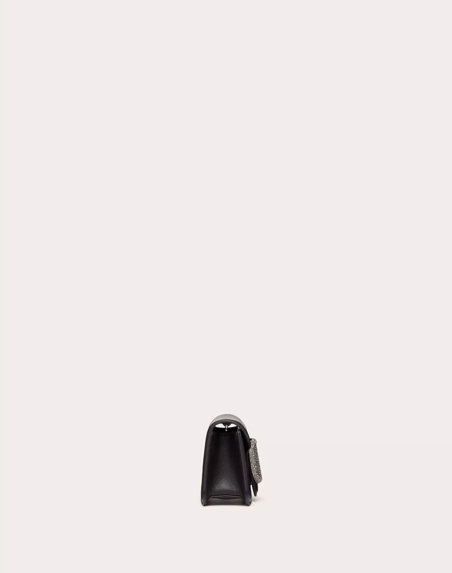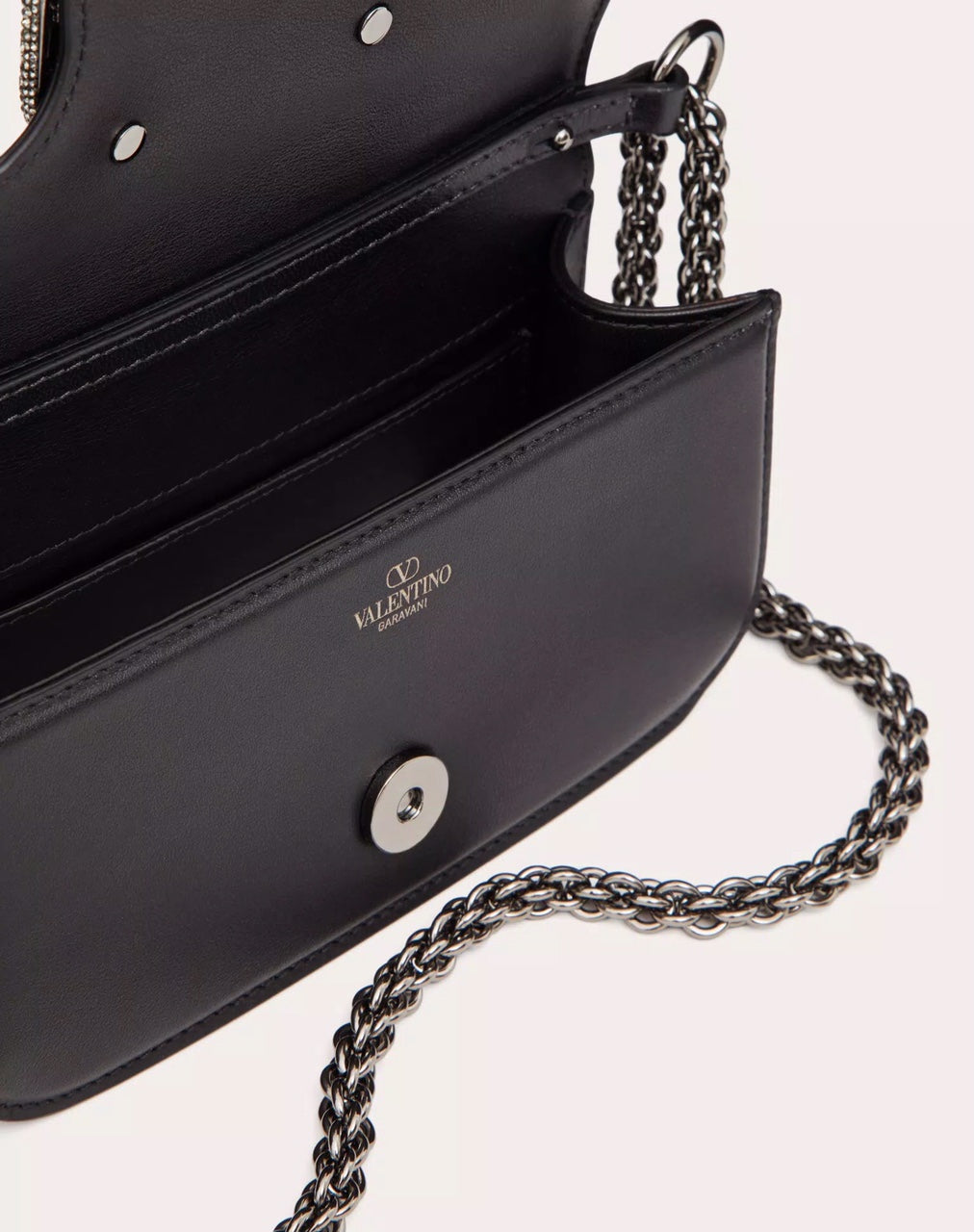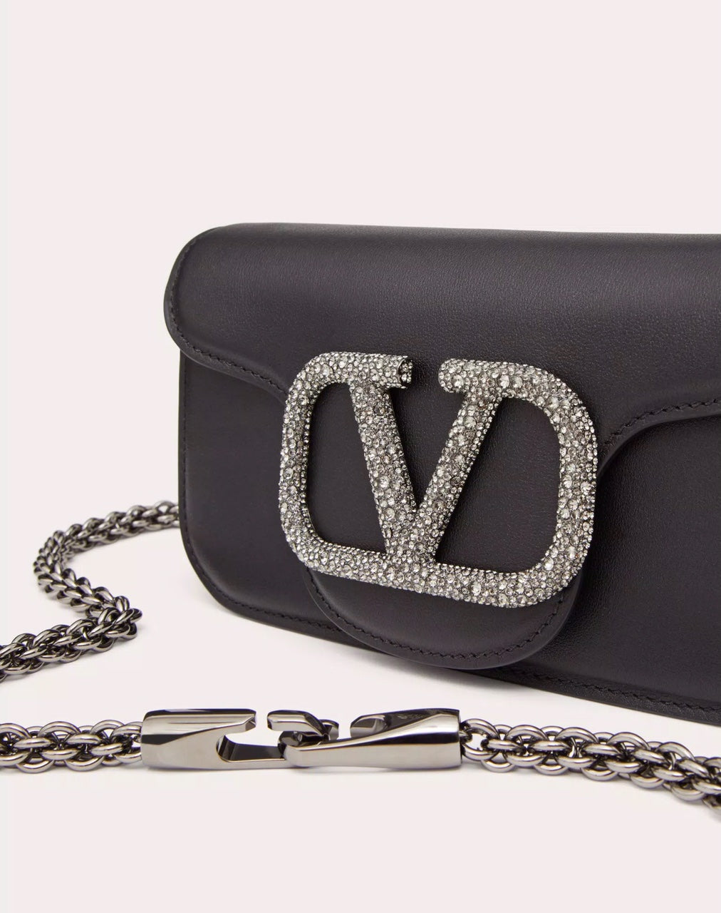 Valentino Garavani Locò small shoulder bag in calfskin with VLogo Signature element covered with Swarovski® crystals.