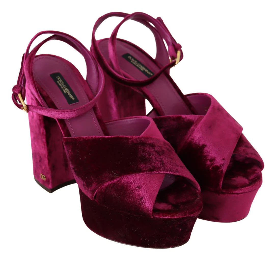 Dolce & Gabbana Fuchsia Velvet Platform Sandals Keira Size 37