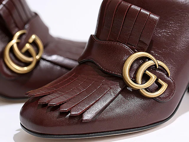 Gucci Marmont Gold GG Logo Ankle Boots Size 7US / 37EU